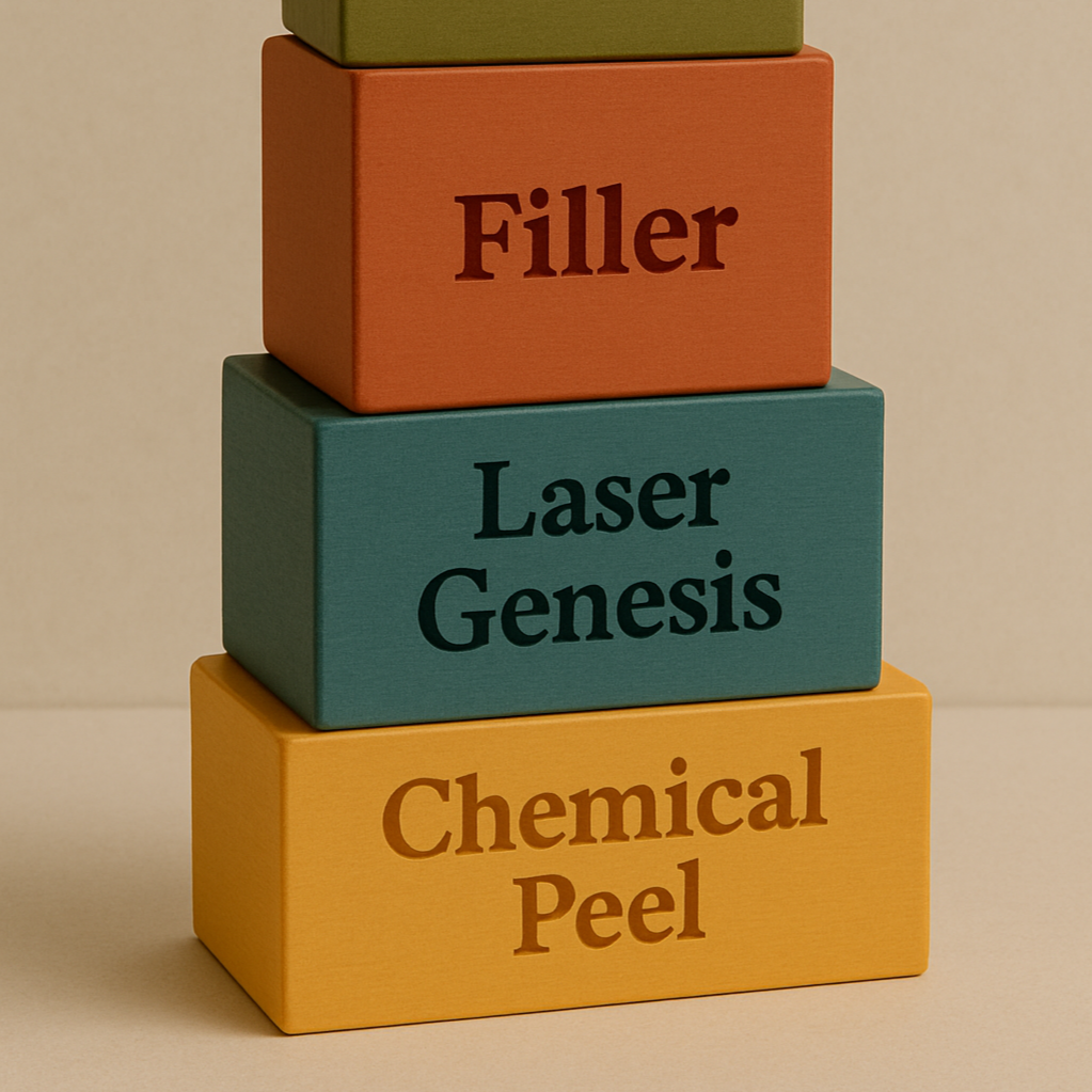 Treatment stacking simply means combining complementary treatments in one visit to address multiple concerns at once. Not because more is better — but because the right things, done together, can be powerful.